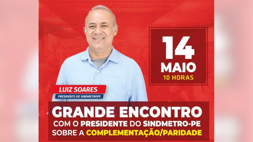 Esta semana, o Sindmetro-PE terá uma agenda cheia de reuniões setorizadas, inicia hoje, terça-feira, dia 7 de maio, e finalizando no dia 14 de maio, às 10h, no Auditório da STUREC, com o presidente do Sindmetro-PE, Luiz Soares, para discutir sobre a complementação/paridade.