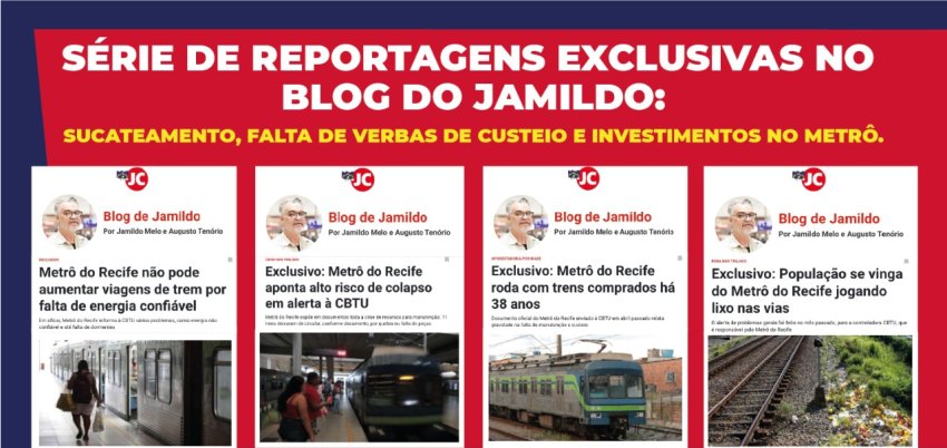 O Blog do Jamildo vem revelando uma série de reportagens exclusivas, expondo a verdade do sucateamento, falta de verbas de custeio e investimentos no Metrô do Recife.