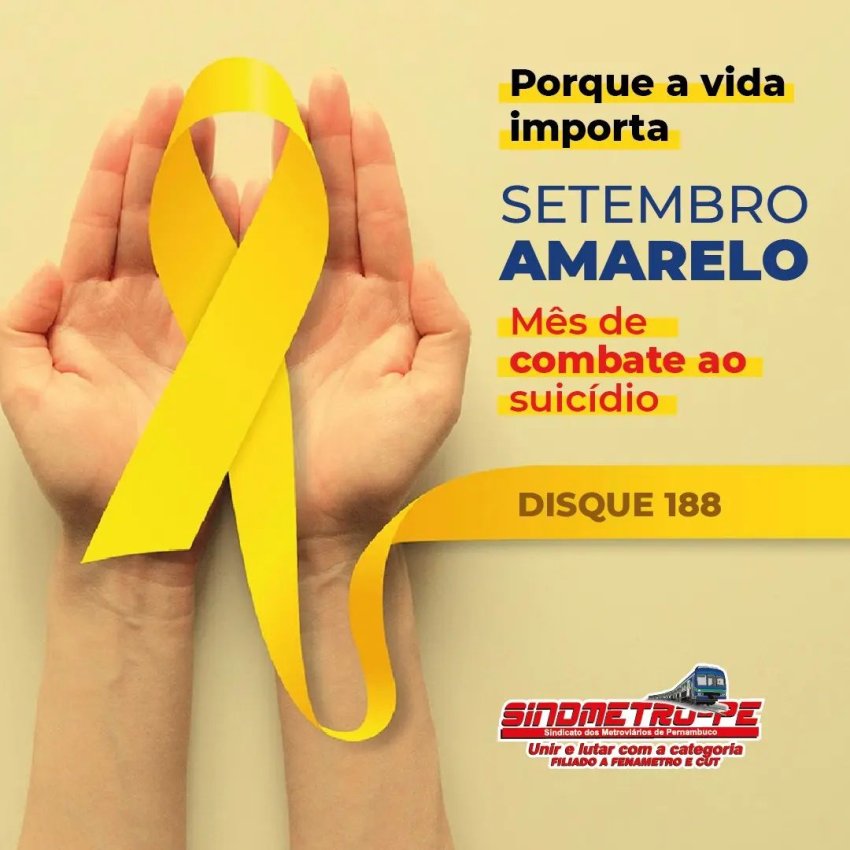 O Sindmetro-PE aderiu à campanha do Setembro Amarelo e traz o informativo aos/as seus/suas filiados/as. Conforme a última pesquisa realizada pela Organização Mundial da Saúde (OMS), no ano de 2019, estima-se mais de 1 milhão de casos de suicídio em todo o mundo. Pensando nisso, a campanha é de suma importância para que cada dia mais pessoas tenham acesso a tratamentos psicológicos e psiquiátricos adequados.